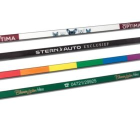 Il lettering ricurvo è ricoperto da un foglio di stampa a caldo di alta qualità in diversi colori, il che rende il supporto sia estetico che duraturo. L’impronta 3D viene applicata alle strisce di montaggio iniettando la plastica direttamente nello stampo.