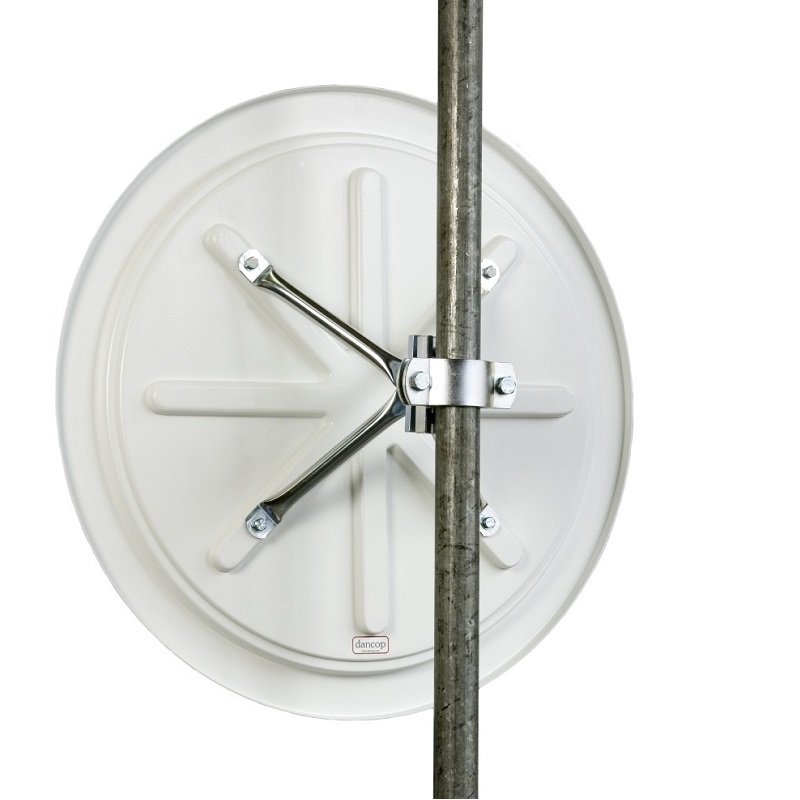 Lo specchietto stradale Panorama TM, certificato TÜV, viene fornito con una staffa di fissaggio a quattro punti molto robusta. Questa staffa consente un fissaggio ottimale su pareti o pali con un diametro di 50 – 85 mm. Lo specchio è testato per il carico del vento fino a una forza del vento 12 (uragano > 117 KM/H / 73 MP/H).