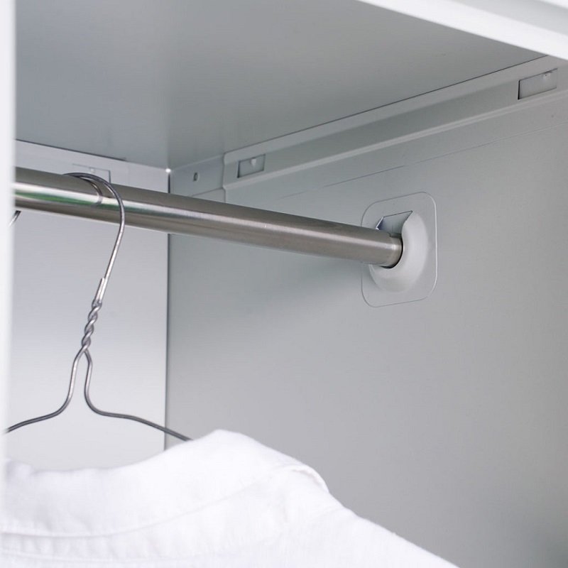 - Ripiani interni e barra appendiabiti: Ogni comparto include un ripiano inferiore e una barra per appendere abiti, uniformi o accessori.