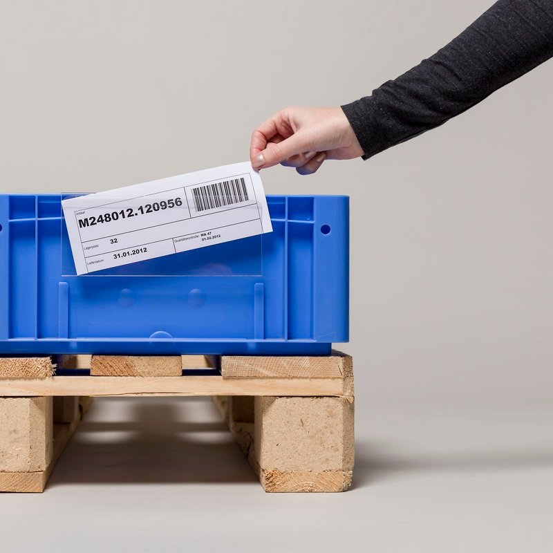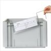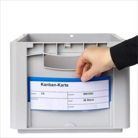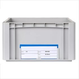 Sacchetti in plastica rigida per piccoli supporti di carico (standard VDA). Adatto per contenitori come piccoli portapacchi, scatole Euro, contenitori Euronorm e scatole Euronorm. La parte anteriore è accorciata e leggermente curva in avanti, in modo che la borsa possa rimanere permanentemente attaccata a un contenitore. Materiale rigido e di alta qualità per un fissaggio sicuro e stabile.