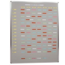 Strumento per l’organizzazione professionale e per la pianificazione del personale, la programmazione in generale e la documentazione degli ordini. Evita intasamenti o tempi di inattività. Variazioni di programma sono immediatamente riconoscibili . Processi regolari e tempi di inattività ridotti. Guide realizzate in robusto polipropilene grigio a bassa manutenzione, lato posteriore in legno dal design moderno e intramontabile con finitura robusta. Materiale per il fissaggio incluso. Facilità di montaggio. Fornito senza targhette identificative e protezioni per gli ordini.