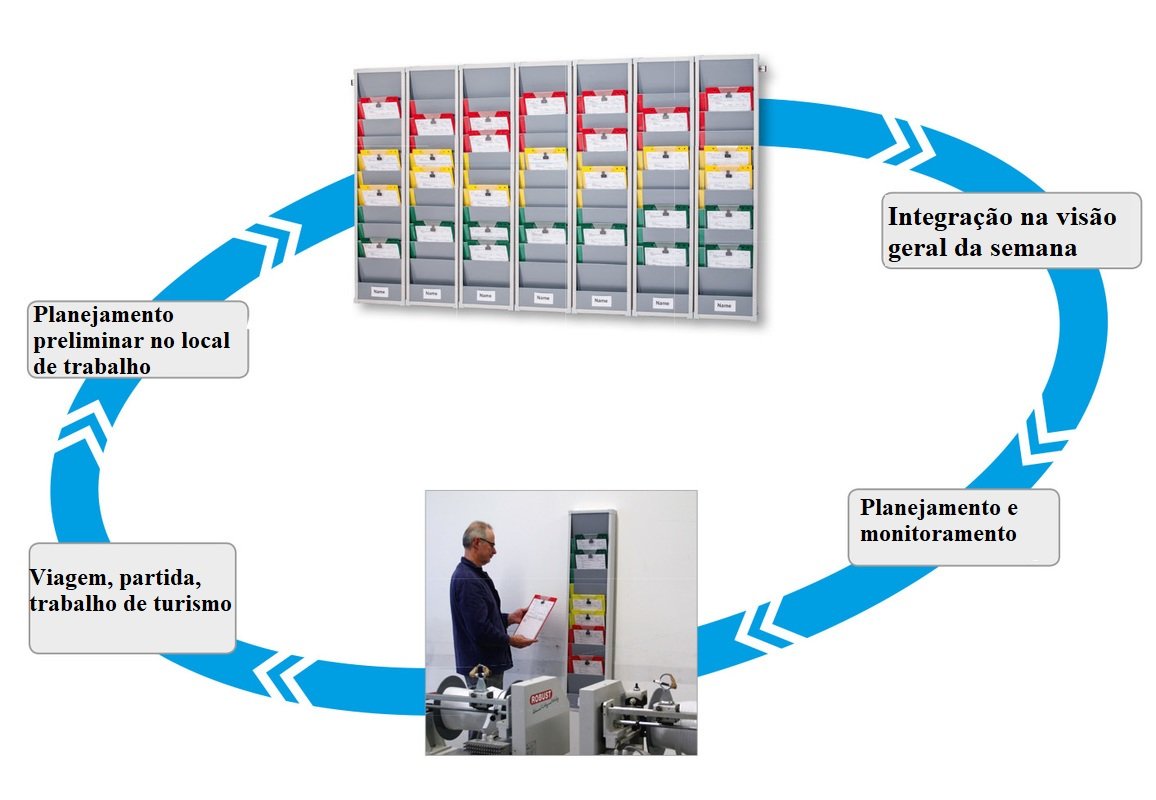 Tutti i documenti di lavoro sono protetti e custoditi in modo ben visibile. Lo schedario è disponibile a scelta con 5 o 7 colonne. I colori delle schede uniti ai corrispondenti compiti sono un valido aiuto visivo per una comprensione automatica del messaggio. Attraverso l’ordine dei colori si possono stabilire delle priorità personalizzate. Questo sistema flessibile è indicato per uffici, industrie e imprese di logistica. I singoli schedari si possono facilmente ricollocare e spostare all’interno delle guide in alluminio. I distanziatori mantengono lo schedario costantemente verticale.