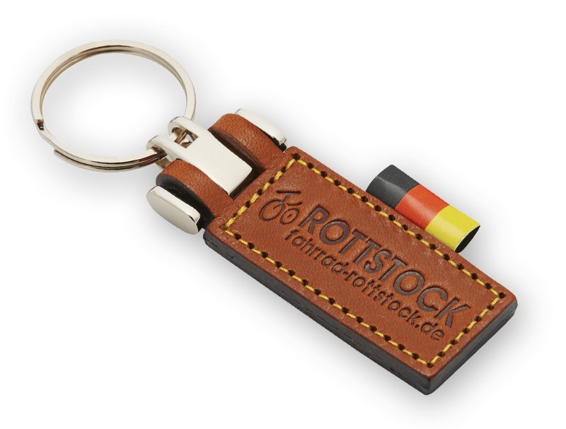 Portachiavi in cuoio con bandierina in raso personalizzabile