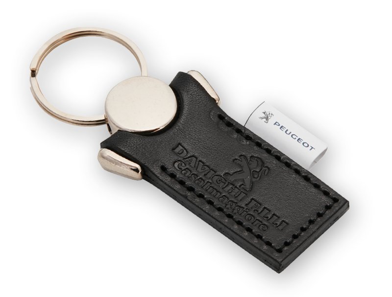 Portachiavi in cuoio con bandierina in raso personalizzabile