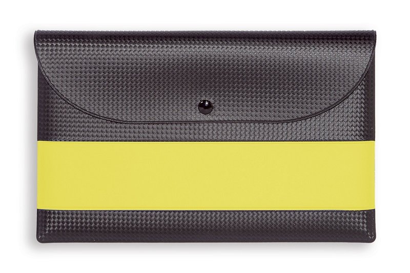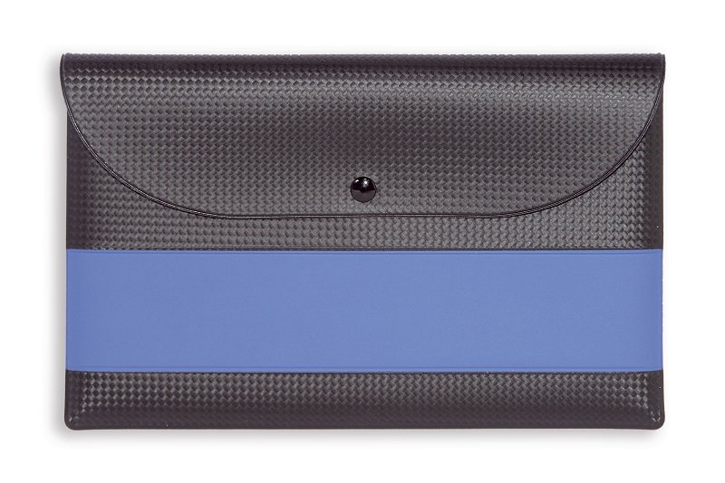 Portadocumenti bicolore in materiale gommato effetto Carbonio con patta