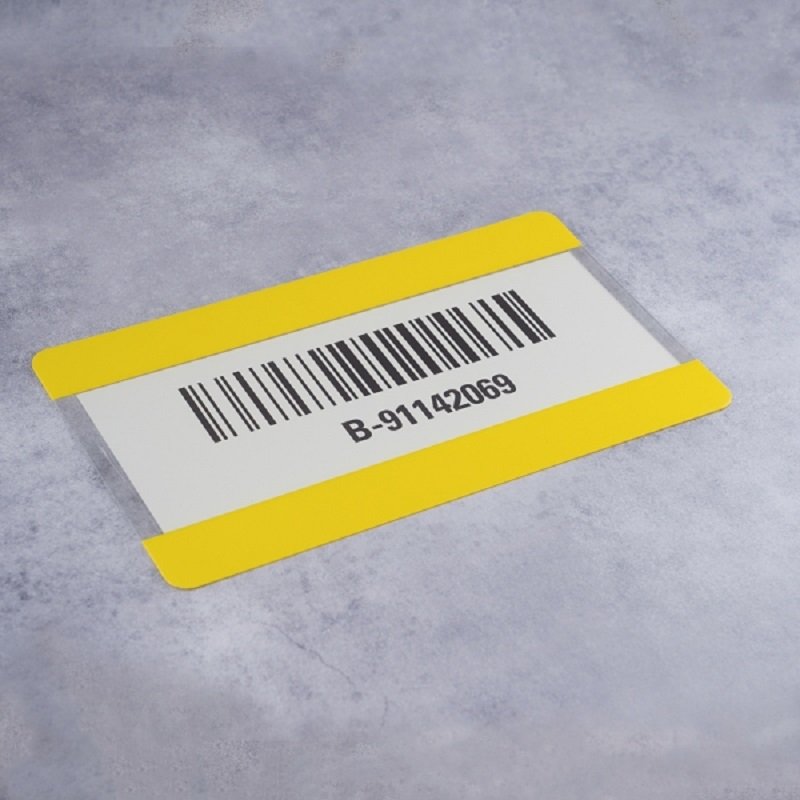 Tasca porta etichette autoadesiva per etichettare spazi pallet direttamente sul pavimento. Le tasche di etichettatura possono essere attaccate rapidamente.