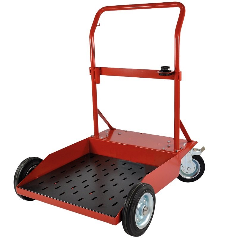 Carrello con ruote speciali per pavimenti sconnessi, con griglia di sgocciolamento, predisposto per il montaggio di avvolgitubo mod. 9016.