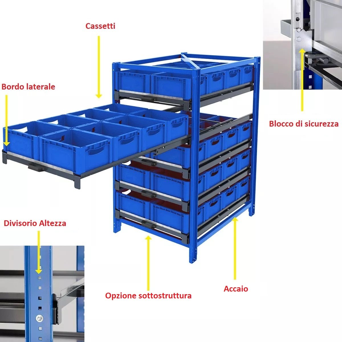 - Ideale per lo stoccaggio di contenitori e minuterie