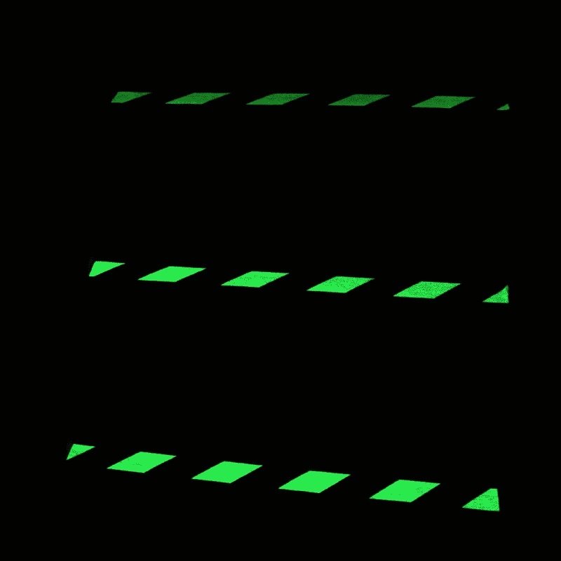 Ciò che differenzia questo prodotto da quelli standard è che i chevron a 45 ° applicati sulla superficie creano un prodotto visibile sia di giorno che di notte. In condizioni di luci spente o quando l’illuminazione ambientale è bassa, i chevron si illuminano fornendo un elevato contrasto tra gli stessi e la base scura dell’antiscivolo, al fine di generare un messaggio ben visibile ed immediato di muoversi con cautela e prestare particolare attenzione. Si tratta quindi di un prodotto perfetto per l’applicazione su passerelle, scale, uscite antincendio e persino intorno a macchinari che potrebbero essere non notati in condizioni di scarsa luminosità.