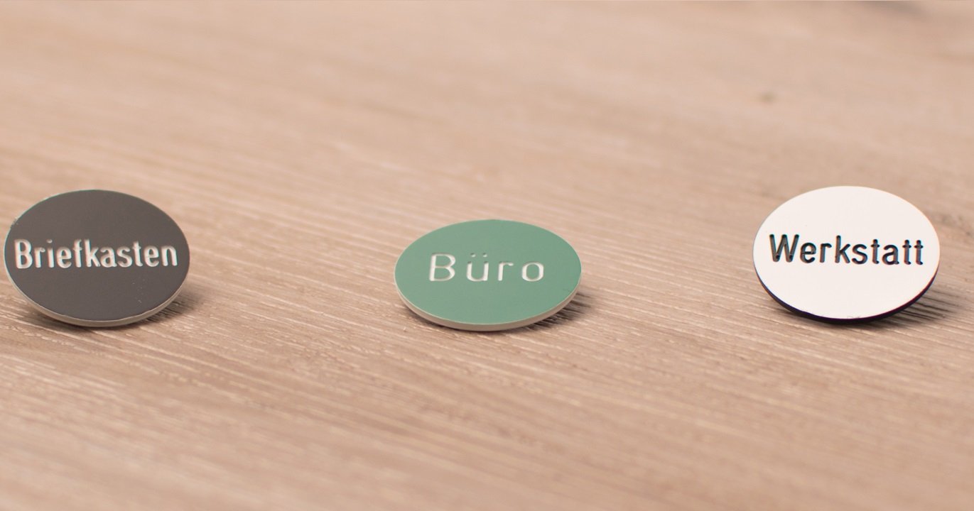 Dischetti in plastica con foro e gancio a S, incisi con testo