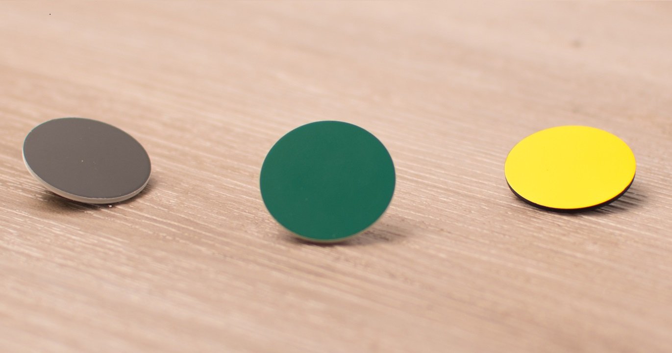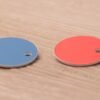 Dischetti in plastica con foro e gancio a S, incisi con testo