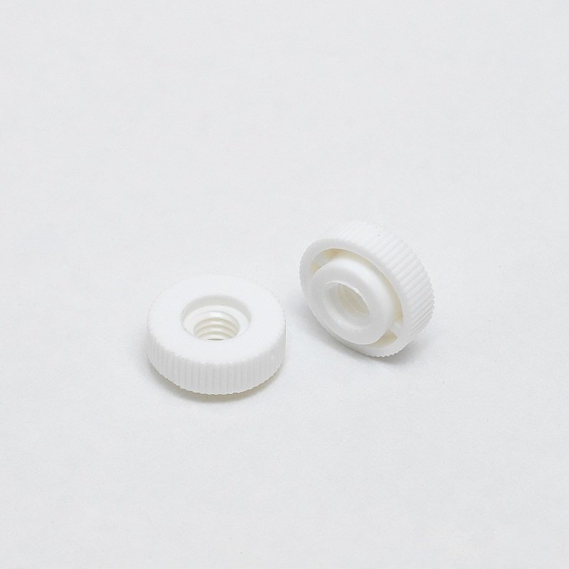Descrizione Dado zigrinato M6, bianco – forma bassa