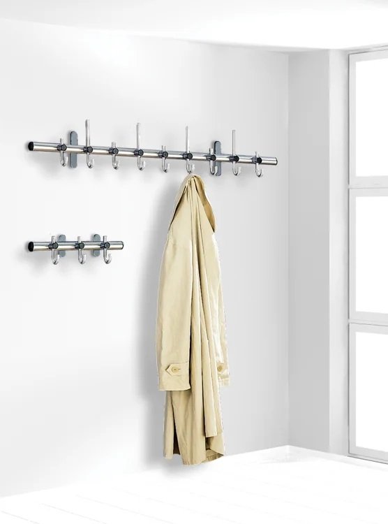 Elegante e moderno portaabiti da parete, dotato di robusti ganci doppi in tecnopolimero. Può essere montato come singolo elemento oppure esteso unendo più elementi per un utilizzo ottimale dello spazio.