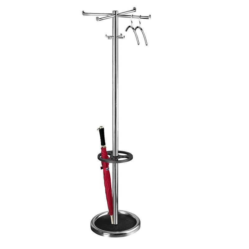 Appendiabiti stabile con 4 ganci per cappelli e 8 ganci per cappotti disposti su una testa girevole. Unità portaombrelli già inclusa.